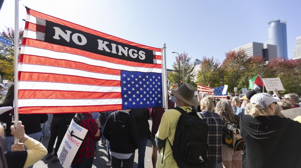 Von New York bis Texas: In den USA hat es erneut Massenproteste gegen Präsident Donald Trump und dessen Politik gegeben. Unter dem Motto „No Kings“ – zu Deutsch: „Keine Könige“ – fanden im ganzen Land Demonstrationen statt. Die Organisatoren sprachen am Samstagabend (Ortszeit) von fast sieben Millionen Teilnehmern in mehr als 2.700 Städten und Ortschaften – rund zwei Millionen mehr als noch im Juni. „Der Präsident glaubt, seine Macht sei absolut», heißt es auf der Website. „Aber in Amerika haben wir keine Könige.“