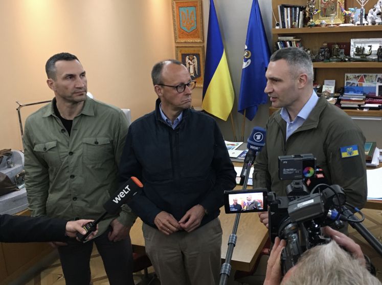 Abendpost aus der Ukraine : Merz’ Tag in Kiew CDU-Chef Friedrich Merz hat sich als erster Spitzenpolitiker Deutschlands nach Kiew gewagt. Und vollen Erfolg gehabt. Nur Boris Johnson stiehlt ihm die Show. VON MORITZ GATHMANN