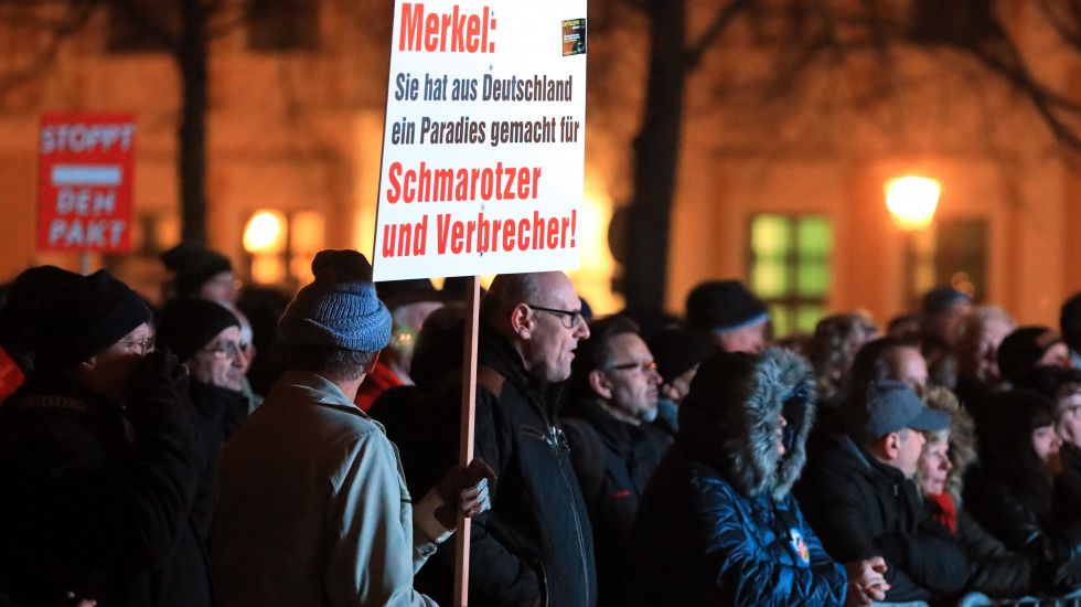 Demonstranten auf einer Kundgebung der AfD gegen den UN-Migrationspakt in Magedeburg. / picture alliance