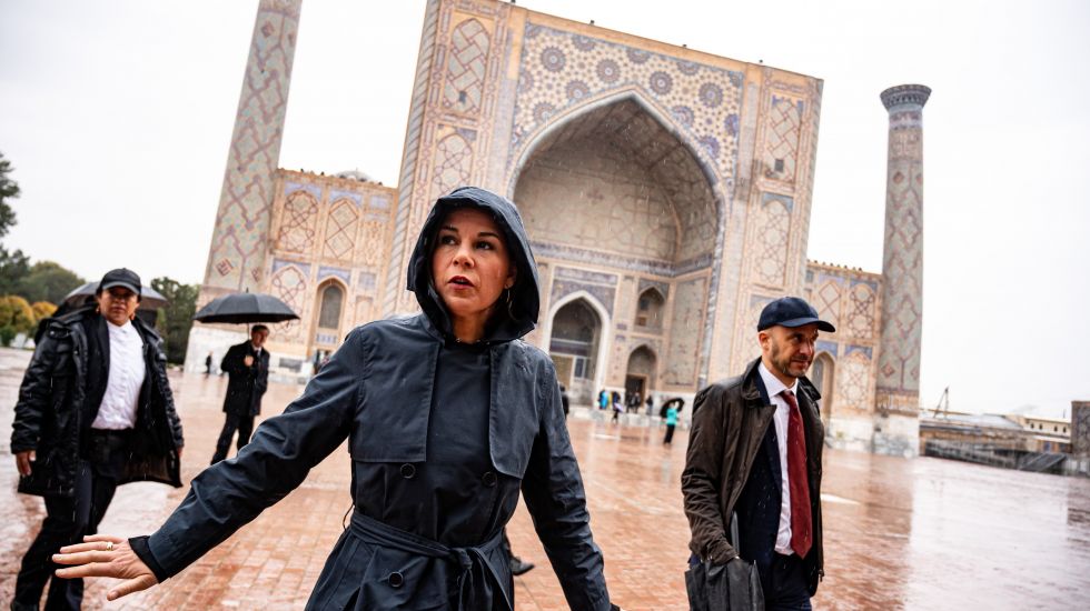 Verloren in der Fremde: Annalena Baerbock bei ihrem Besuch in Usbekistan / dpa