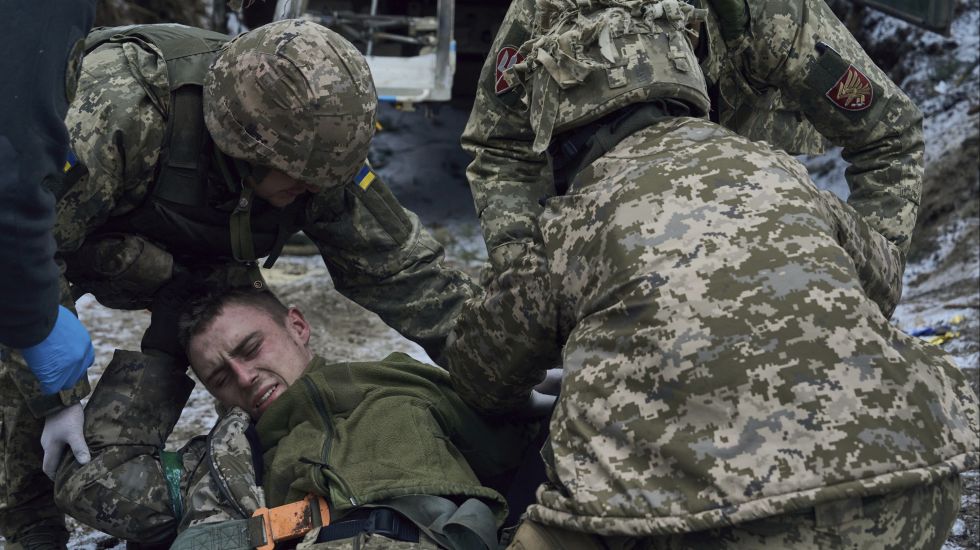 her fordert „Russland wird nie verhandeln und ist deshalb militärisch in die Knie zu zwingen“ mit dem Bild eines verletzten ukrainischen Soldaten zu versehen.