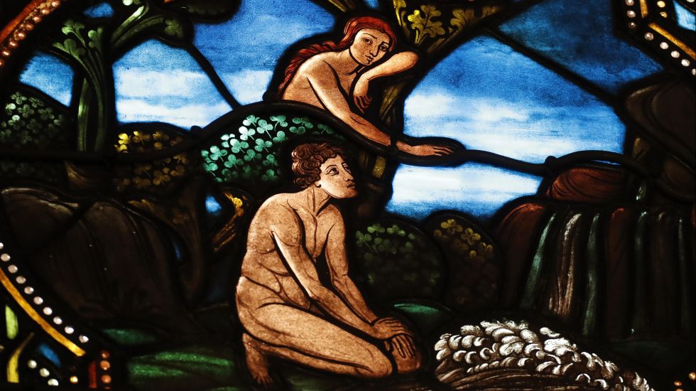 Adam und Eva als Glasmalerei in Notre Dame / dpa