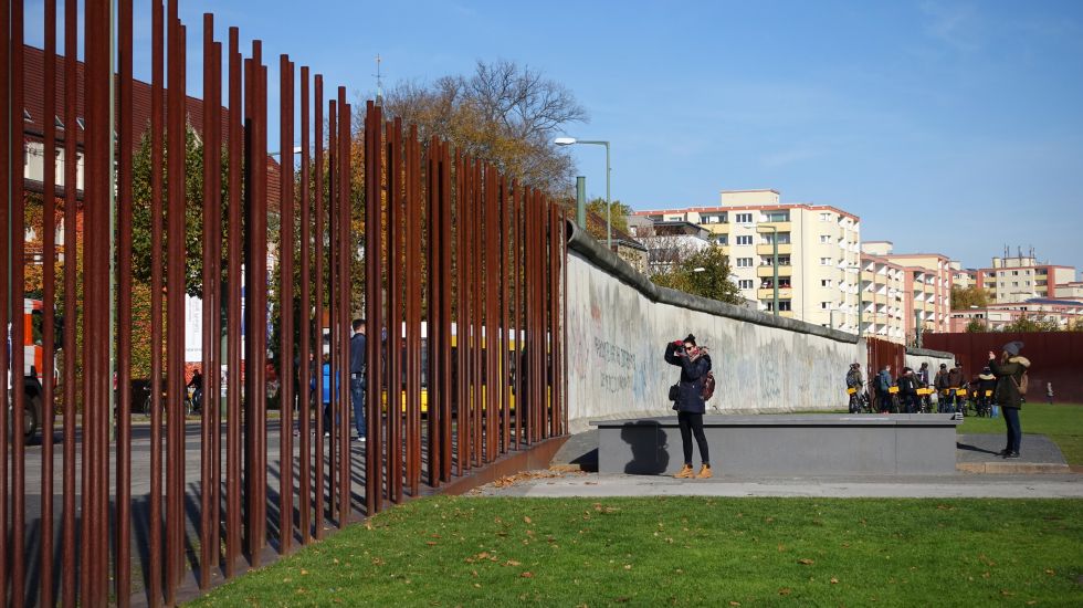 „Können Sie hier leben?“, fragte mich einmal eine Passantin. Ich habe es damals bejaht und gedacht, dass ich bewusst an den Rand des ehemaligen Niemandslands gezogen bin. Wie belebt der Todesstreifen ist, hat auch mich überrascht. An manchen Tagen ähnelt er einem Zirkus. Selfies werden gemacht, Kletterversuche unternommen oder der Kletterversuch wird als Videoselfie mitgeschnitten. Auf der Mauerinnenseite stehen von Touristen angesprühte Sprüche: „We never had to build a wall to keep our people in.“ Die Westseite, die eigentlich in den Wedding, nach Norden zeigt, ist durchgehend grau. Eine umgekehrte Welt ist das und nicht unbedingt originalgetreu. Nur abends, wenn die alten Kontrolllaternen ihr messerscharfes Licht abwerfen, ahnt man, wie gefährlich dieser Grenzstreifen war.