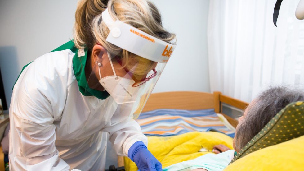 Nein, das wäre auch gar nicht gegangen. Es sind nur 20 Bewohner, die regelmäßig Besuch bekommen. Für die Leute, die fit sind, haben wir einen eigenen Besuchsraum im Haus eingerichtet mit allen erforderlichen Maßnahmen, wie zum Beispiel mit einer Plexiglasscheibe. Die, die bettlägerig sind oder im Sterben liegen, bekommen ihren Besuch aufs Zimmer. Der muss natürlich entweder einen negativen Corona-Test vorweisen, oder wenn er den nicht hat, machen wir das.