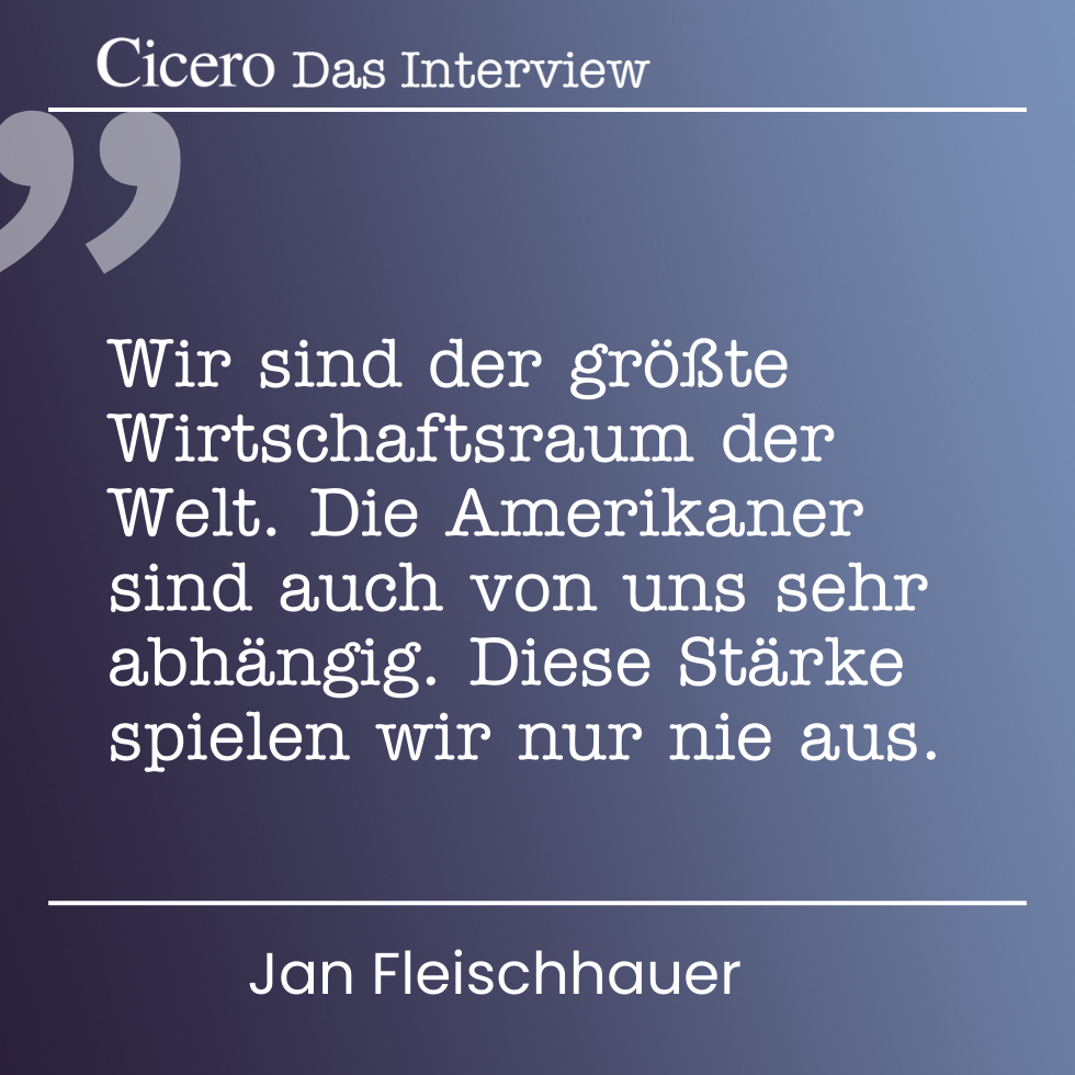 Wir bekämen was hin, wenn wir wollten. Es gibt auch europäische Suchmaschinen. Wir könnten mal die Apple Stores für vier Wochen schließen, wenn es hart auf hart kommt. Das würde man dann auch in New York an der Börse spüren. Wir sind der größte Wirtschaftsraum der Welt. Die Amerikaner sind auch von uns sehr abhängig. Diese Stärke spielen wir nur nie aus. Das traurigste Bild war für mich letztes Jahr, wie Ursula von der Leyen neben Donald Trump saß und sich noch artig dafür bedankte, dass ihr der Hosenboden versohlt worden war, weil die Schläge nicht ganz so schlimm ausgefallen waren wie erwartet.