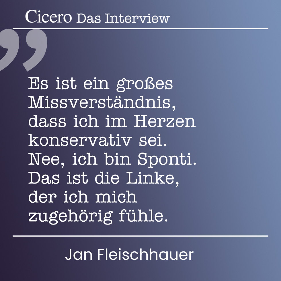 Ich lese und höre Fleischhauer regelmäßig. Ich bin nicht immer einer Meinung mit ihm, muss man auch nicht. Jedenfalls weiß er durch sein breites Meinungsspektrum gerade auch sein Leserforum im Focus immer wieder zu begeistern oder aufzuregen. Der läßt sich nicht einfach nur links oder rechts einordnen, der hat dezidierte Meinungen zu einzelnen Themen, die mal so und mal so klingen. Und so wird er auch von der linken Blase eher konservativ eingestuft, weil er eben für sich Prinzipien hat und vertritt, die links eben nicht passen und das wir ja, alles was nicht links ist, ist eben rechts. Und nein, ich werde mir auch dieses Buch nicht kaufen, weil ich keine Zeit habe und da nichts neues drin lesen werde. Da schaue ich mir lieber das Interview mit ihm und der süßen Carolin Blüchel an, die das Ganze intellektuell und optisch nochmals aufhübscht.