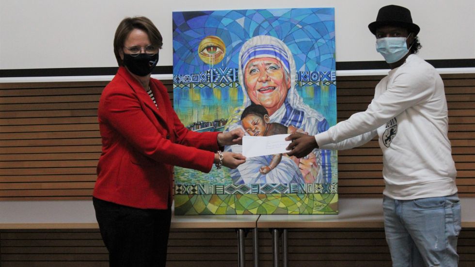 Der geflüchtete Maler Mulugeta Tekle hat ein Bild von Angela Merkel in Gestalt von Mutter Teresa gemalt. Es ist eine kitschige Darstellung, die am Ende aber mehr über den Zustand der deutschen Flüchtlingspolitik verrät als jeglicher Realismus.