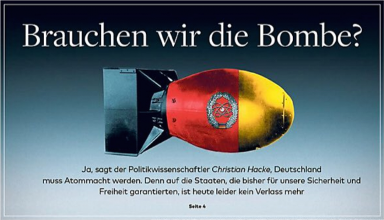 Verteidigungspolitik : Falsches Hoffen auf die Zeit nach Trump Zuerst bei Cicero Online erschienen, jetzt bei Welt am Sonntag als Aufmacher: Der Debatten-Beitrag von Christian Hacke zu einer möglichen deutschen Atombombe hat eine Diskussion entfacht EIN GASTBEITRAG VON CHRISTIAN HACKE