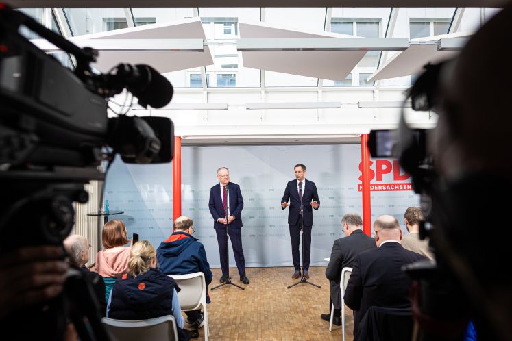 Landtagswahl : Warum die SPD in Niedersachsen sich vom Bundestrend abkoppeln konnte Die SPD überraschte in Niedersachsen mit einem hervorragenden Wahlergebnis, während die Beliebtheitswerte der Sozialdemokraten auf Bundesebene sinken. Das lag zum Teil an der Schwäche der CDU und der FDP, aber vor allem an der Person des alten und neuen Ministerpräsidenten Stephan Weil, der den Wählern als verlässliche Kraft in der Wirtschaftskrise gilt. VON KLAUS WALLBAUM