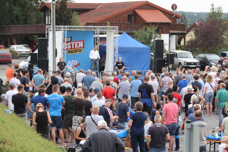 AfD im Osten : Rechte Volkspartei? Die AfD liegt in Umfragen bundesweit mittlerweile gleichauf mit der SPD. Vor allem im Osten gehört die Partei, die sich immer weiter radikalisiert, inzwischen zum Alltag. Nächstes Jahr sind Wahlen. Droht die Machtübernahme? VON BENJAMIN LASSIWE UND VOLKER RESING