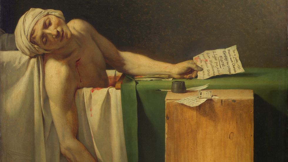 Man sieht nur, was man sucht Revoluzzer im Bade Das Gemälde „Der Tod des Marat“ von Jacques-Louis David liefert stichhaltige Argumente gegen den Staatsterror. Jener Jean-Paul Marat rief als Schreibtischtäter der Revolution zu Massakern auf. Sein Porträtist David wurde später Hofmaler Napoleons. VON BEAT WYSS