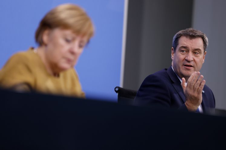 Streit um Föderalismus in der Corona-Krise : Söder muss springen! Der Streit über die richtigen Maßnahmen im Kampf gegen die Pandemie gerät immer mehr zu einem Streit über den Föderalismus. Und die Bundeskanzlerin selbst hat ihn angeheizt. Einzig der bayerische Ministerpräsident hätte jetzt die Kraft, die Misere zu lösen. Und das Kanzleramt für die Union zu verteidigen. VON MATHIAS BRODKORB