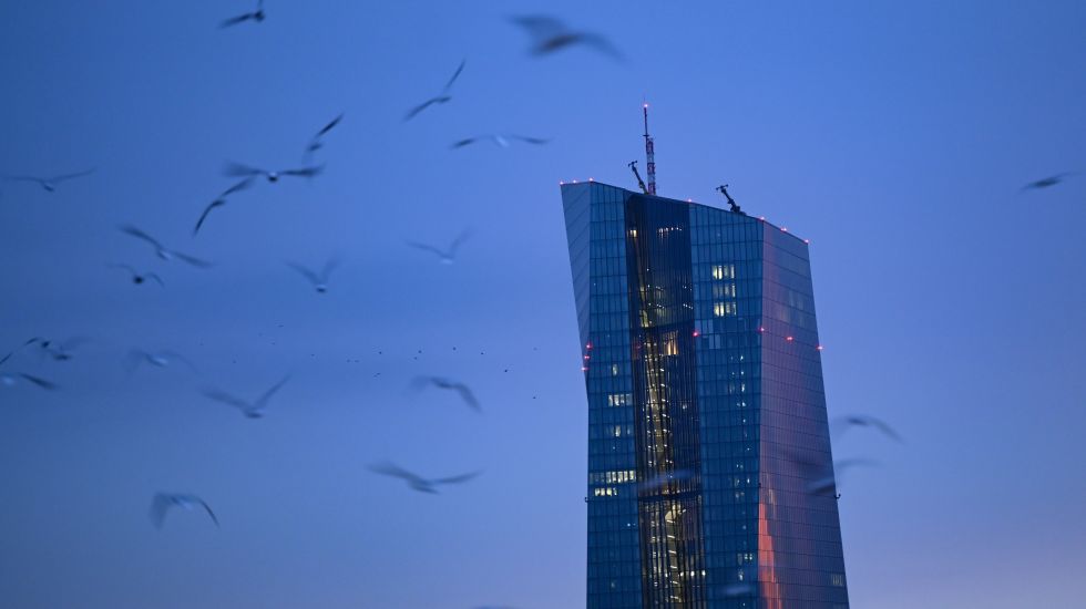 "Möwen fliegen in Frankfurt vor der Europäischen Zentralbank (EZB) über den Main".